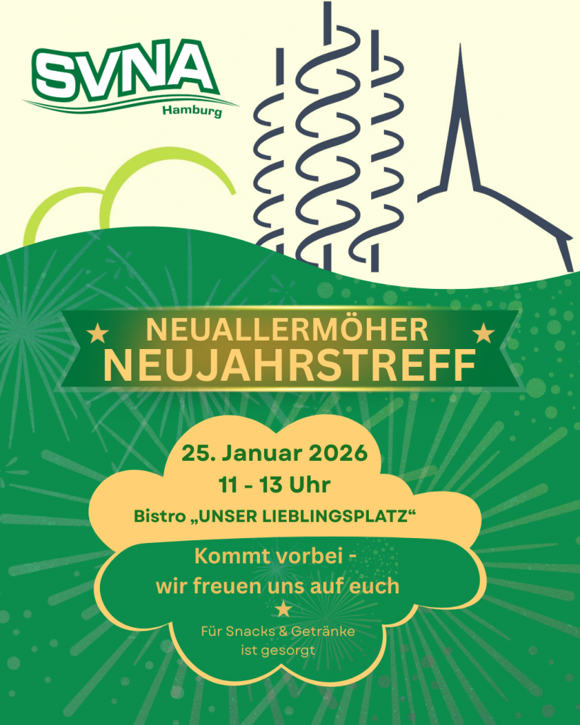 Am 25. Januar 2026 lädt der SVNA bereits zum dritten Mal in Folge zum Neuallermöher Neujahrstreff ein. Das SVNA-Vereinszentrum am Henriette-Herz-Ring wird von 11 bis 13 Uhr zu einem Ort des Austauschs, des Kennenlernens und der Begegnung für die Menschen im Stadtteil.