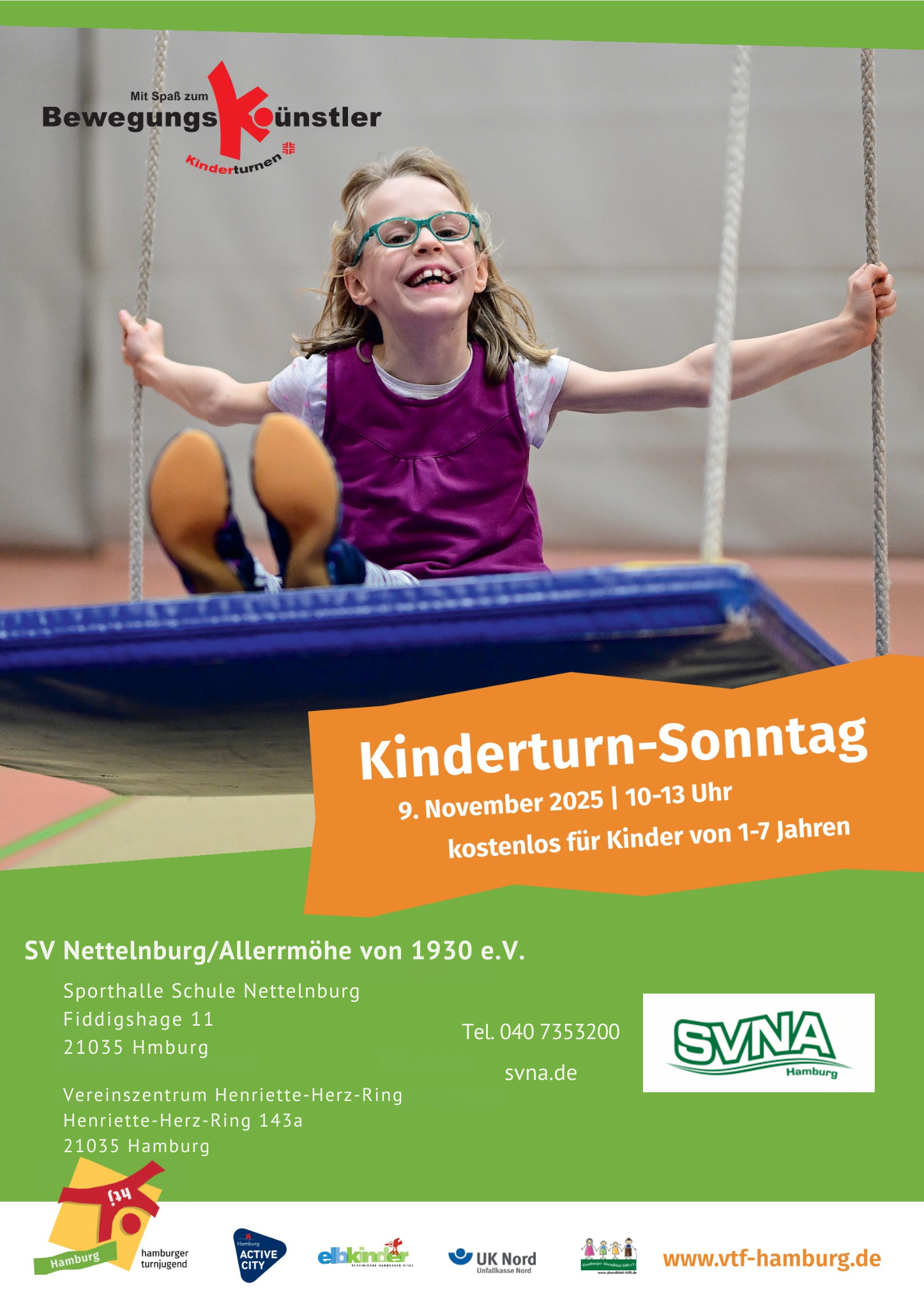 Am 12. November 2023 findet bundesweit der Kinderturn-Sonntag statt. Dieser Aktionstag ist für alle ein- bis siebenjährigen Kinder die gerne den Vereinssport kennenlernen wollen. Die Kinder können in Begleitung der … Kinderturn-Sonntag beim SVNA weiterlesen